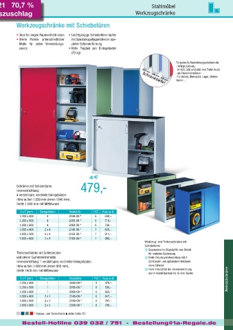Werkzeugschränke für schwerere Lasten Werkzeug-Beistellschränke für schwerere Lasten mit 1 ver- 1.200 x 400 4 2049-00-* 6 659,–