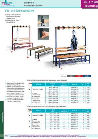 Garderobenschränke Freistehende Sitzbank 1.650 x 1.000 x 403 – – 4 6 8051-010-s.o. 3 3 4 4 309,–