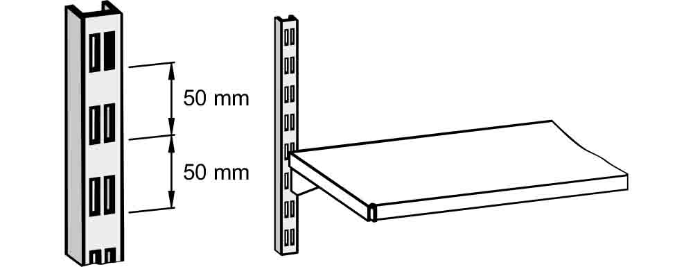 Zweireihig schlitzgelocht im Abstand von 50 mm, U-Profil 12x25x12 mm, lichtgrau pulverbeschichtet