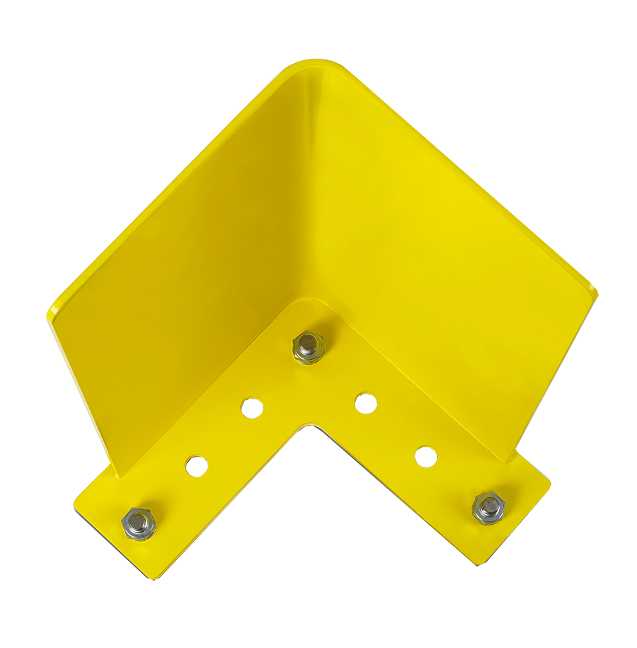 Anfahrschutzecke zum Schutz von Regalstützen im Eck- und Durchfahrtsbereich. Höhe 400 mm. Pulverbeschichtet in RAL 1018 mit mit gelb-schwarzer Markierung zum Aufkleben.